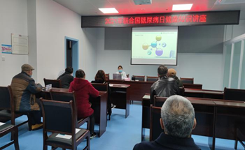 12日上午,组织糖尿病患者在会议室开展糖尿病足科普讲座,外科护士长牟丽梅老师结合糖尿病