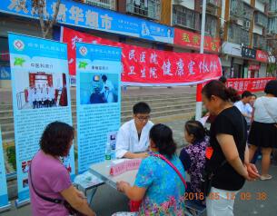 服务方式“零距离”——结合慢病宣传日健康教育工作,每年开展10期健康宣传义诊活动,把健康送进社区。2016年5月12日,我院第4次医疗服务进社区健康宣传义诊活动在八角井镇双凤小区如期开展。健康宣传义诊队一行7名医务人员通过对当地居民开展疾病筛查、用药指导和健康教育宣传,与当地居民进行面对面健康互动。本次义诊活动,共义诊居民266人,筛查出疾病高风险和患病居民70余人,发放健康教育宣传单300余份。