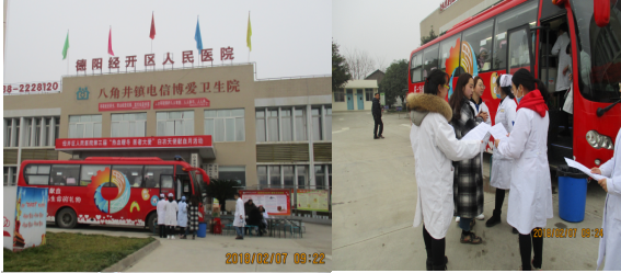 热血暖心 医者大爱 为保障医疗用血,缓解临床“血荒”。2月7日,在德阳市卫计委的统一号召下,我院联合德阳市中心血站在刺骨的寒风里开展“第三届白衣天使献血”公益活动。 活动中,我院医护人员踊跃参与,积极配合填写捐血征询表、现场体检等环节,纷纷献出一点爱心。 此次活动,旨在向全社会传递正能量,弘扬无私奉献、献血救人的人道主义精神。