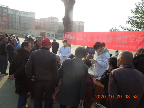 活动中,通过悬挂横幅、免费测量血压、血糖、发放卒中预防宣传资料、健康咨询等方式,我院医