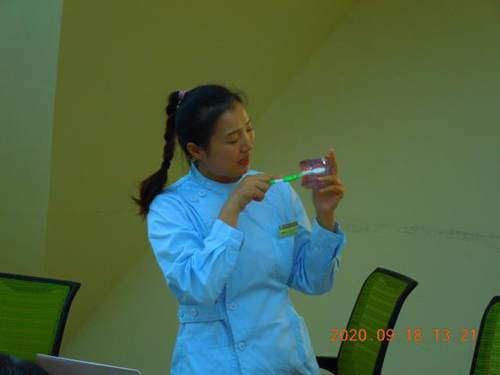 度为教师们演示了成人及幼儿正确的刷牙方法,以促进幼师们正确指导幼儿刷牙。