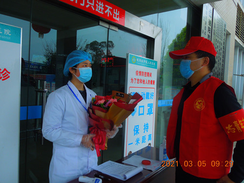 为大力弘扬雷锋精神,3月5日,经开区文明办、团工委副书记莫锟带队慰问我院疫情防控一线的团